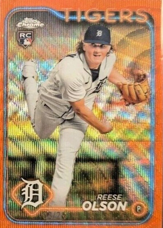 REESE OLSON 2024 Topps Chrome Orange Wave Refractor RC #40 Detroit Tigers 15/25