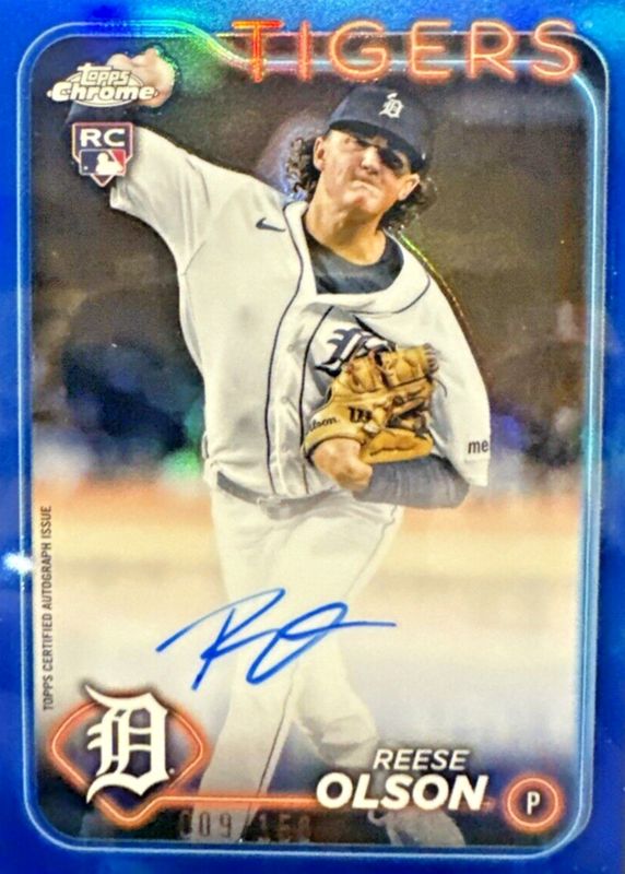 2024 Topps Chrome Rookie Autographs Reese Olson RA-RO Blue Refractor /150 AU, RC