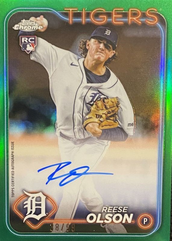 2024 Topps Chrome Reese Olson Auto Green /99 Detroit Tigers Rookie #RA-RO RC