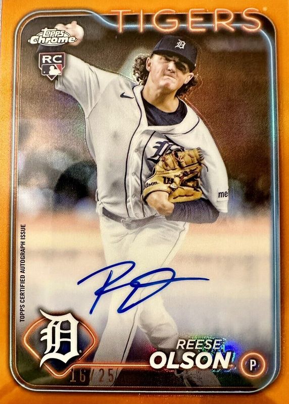 2024 Topps Chrome Reese Olson RC Rookie Orange Auto /25 RA-RO Detroit Tigers