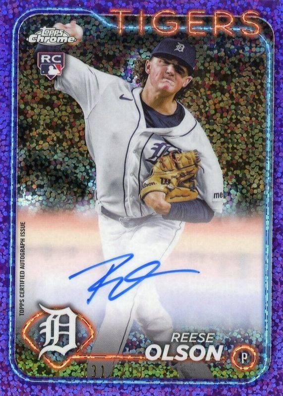 2024 Topps Chrome Reese Olson RC Purple Speckle Auto #/299 Tigers RA-RO