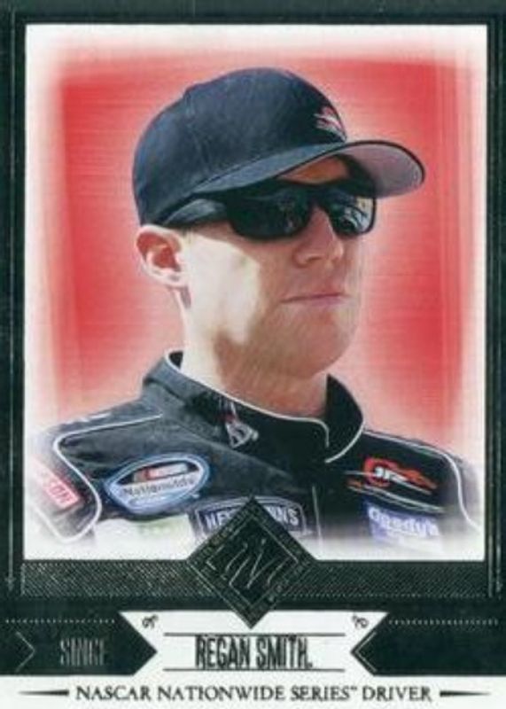 The Regan Smith 2014 Press Pass Total Memorabilia #38 Base card is 1 of 8 Regan Smith's card variations in the 2014 Press Pass Total Memorabilia set being tracked by Sports Card Investor, including Red, Gold /175, Black & White /99, Total Memorabilia Silver Single /275, and Total Memorabilia Gold Dual /150.