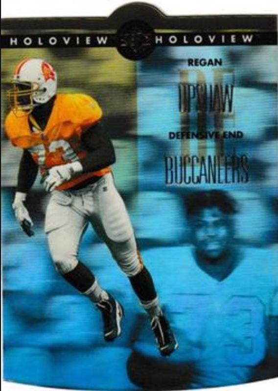 The Regan Upshaw 1996 SP #34 Holoview Die-Cut card is 1 of 3 Regan Upshaw's card variations in the 1996 SP set being tracked by Sports Card Investor, including Base, and Holoview.