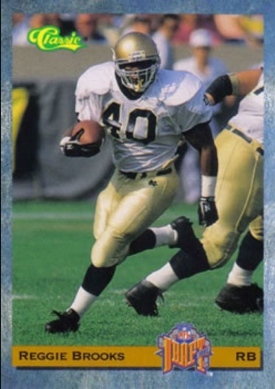 The Reggie Brooks 1993 Classic #46 Base Rookie card is 1 of 4 Reggie Brooks' card variations in the 1993 Classic set being tracked by Sports Card Investor, including Gold, Draft Stars, and Limited Prints.