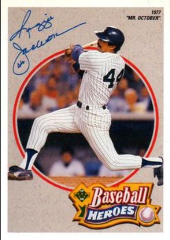 The Reggie Jackson 1990 Upper Deck #3 Baseball Heroes: Reggie Jackson card is 1 of 10 Reggie Jackson's card variations in the 1990 Upper Deck set being tracked by Sports Card Investor, including #9 Baseball Heroes: Reggie Jackson, #1 Baseball Heroes: Reggie Jackson, #2 Baseball Heroes: Reggie Jackson, #4 Baseball Heroes: Reggie Jackson, and #5 Baseball Heroes: Reggie Jackson.