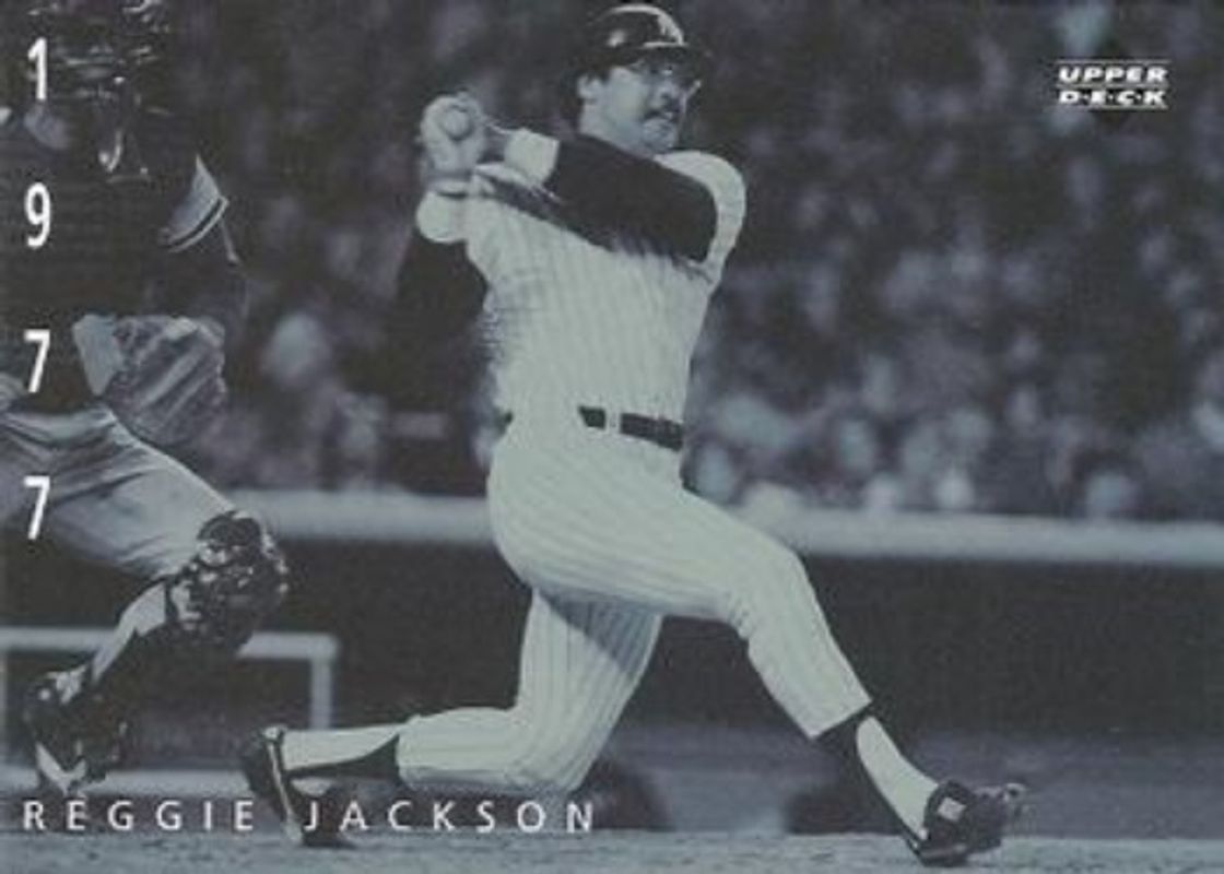 The Reggie Jackson 1994 Upper Deck American Epic #75 Base card is 1 of 2 Reggie Jackson's card variations in the 1994 Upper Deck American Epic set being tracked by Sports Card Investor, including Little Debbie.