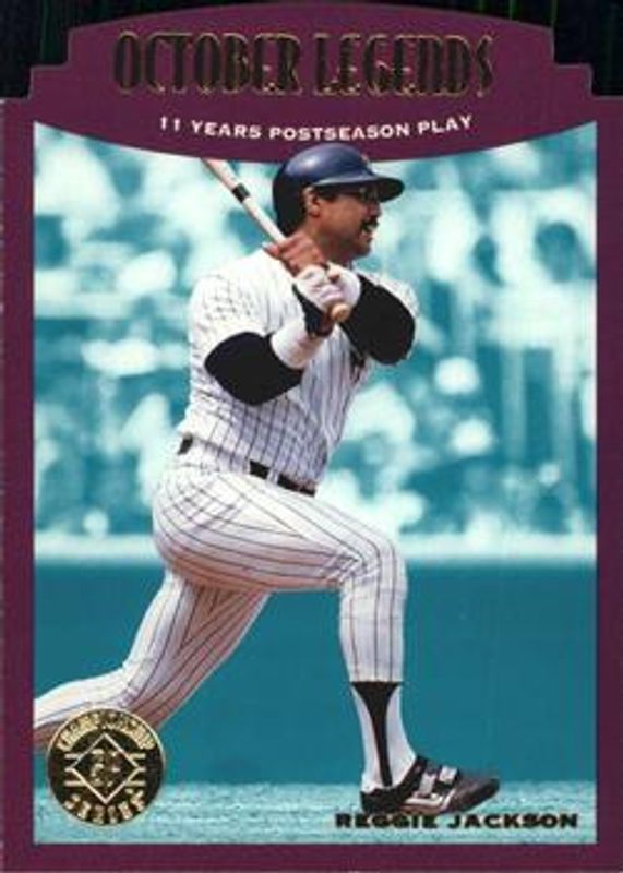 The Reggie Jackson 1995 SP Championship #109 Die Cuts card is 1 of 4 Reggie Jackson's card variations in the 1995 SP Championship set being tracked by Sports Card Investor, including Base, Classic Performances, and Classic Performances Die Cuts.
