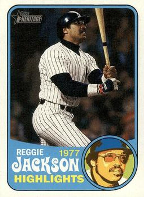 The Reggie Jackson 2018 Topps Heritage #RJH-3 Reggie Jackson Highlights card is 1 of 28 Reggie Jackson's card variations in the 2018 Topps Heritage set being tracked by Sports Card Investor, including 1969 Topps Bazooka All Time Greats, 1969 Topps Decals High Number, 50th Anniversary Buybacks, Baseball Flashbacks, and Real One Autographs.