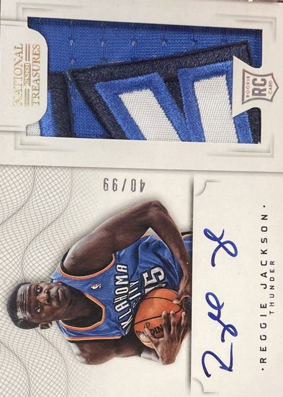 The Reggie Jackson (NBA) 2012 National Treasures #121 Rookie Patch Auto /99 card in Raw condition has not changed in price in the last 30 days and was last sold for $62.00 .