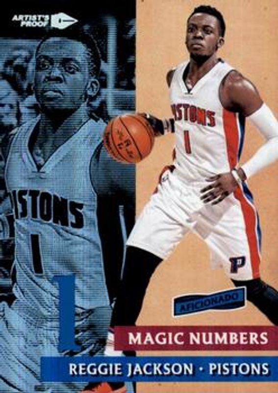 The Reggie Jackson (NBA) 2016 Aficionado #9 Magic Numbers Artist's Proof card is 1 of 14 Reggie Jackson (NBA)'s card variations in the 2016 Aficionado set being tracked by Sports Card Investor, including Base, Artist's Proof, Opening Night Preview Edition, Tip Off, and Artist's Proof Red /99.