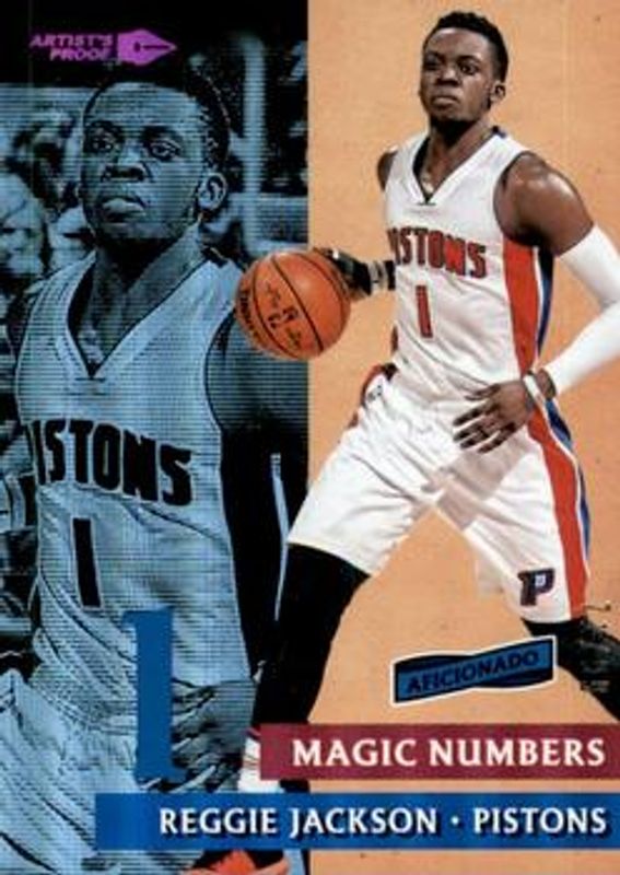 The Reggie Jackson (NBA) 2016 Aficionado #9 Magic Numbers Artist's Proof - Red /99 card is 1 of 14 Reggie Jackson (NBA)'s card variations in the 2016 Aficionado set being tracked by Sports Card Investor, including Base, Artist's Proof, Opening Night Preview Edition, Tip Off, and Artist's Proof Red /99.