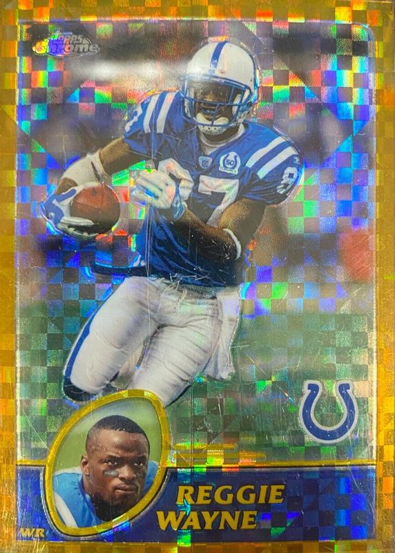 This card is 1 of 2 Reggie Wayne's card variations in the 2003 Topps Chrome set being tracked by Sports Card Investor, including Black Refractor /599.