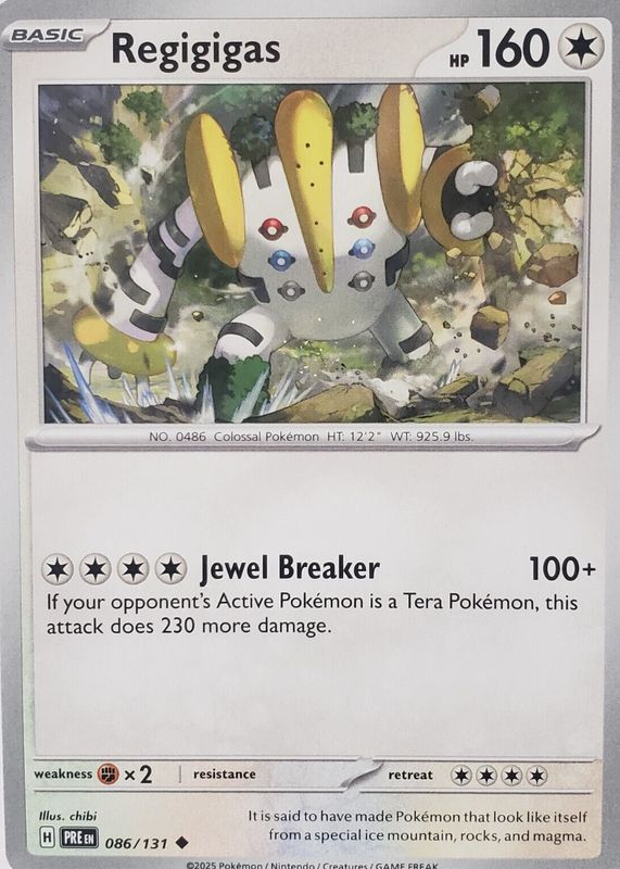 Regigigas 2025 Scarlet & Violet: Prismatic Evolutions #086/131 Base RAW TCG (LIGHTLY PLAYED) Price Guide