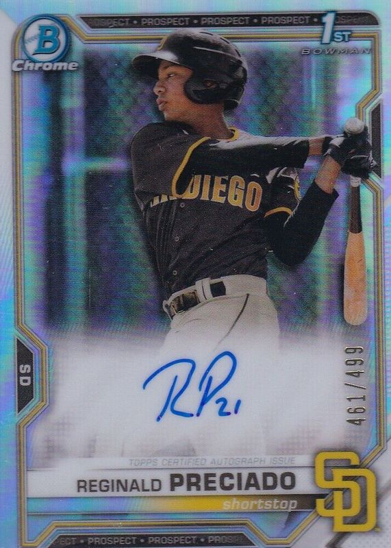 2021 Bowman Chrome - REGINALD PRECIADO REFRACTOR 1ST AUTO #/499 🔥!!