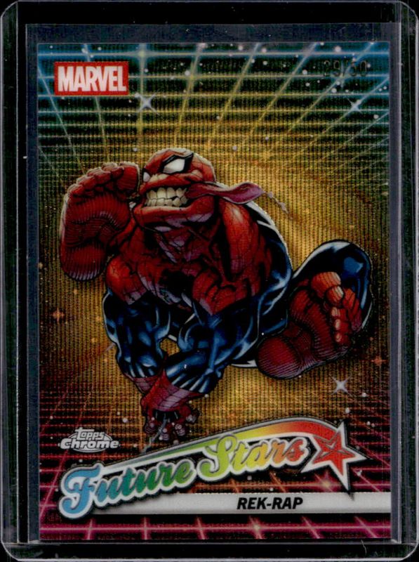 The Rek-Rap 2025 Topps Chrome #FS-2 Future Stars - Gold Wave Refractor /50 card is 1 of 29 Rek-Rap's card variations in the 2025 Topps Chrome set being tracked by Sports Card Investor, including Base, Refractor, Yellow Lava Refractor, Spider Web Refractor /399, and Blue Refractor /299.