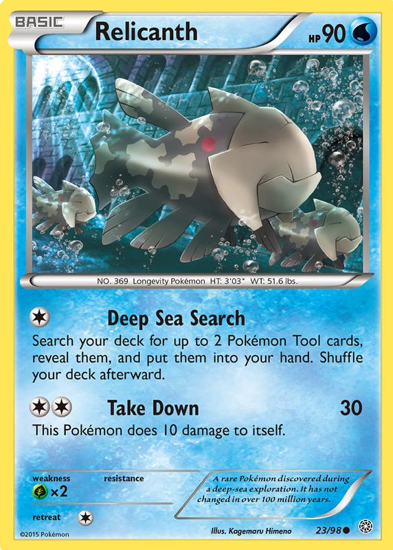 The Relicanth 2015 XY: Ancient Origins #23/98 Base card in Raw TCG (Lightly Played) condition has not changed in price in the last 30 days and was last sold for $0.99 .