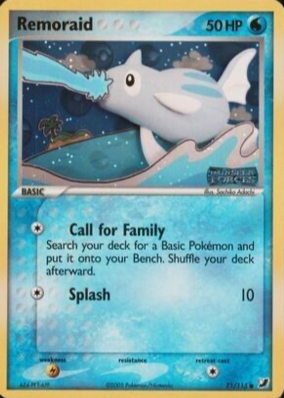 The Remoraid 2005 EX: Unseen Forces #071/115 Reverse Holo card in Raw TCG (Near Mint) condition has not changed in price in the last 30 days and was last sold for $18.00 .