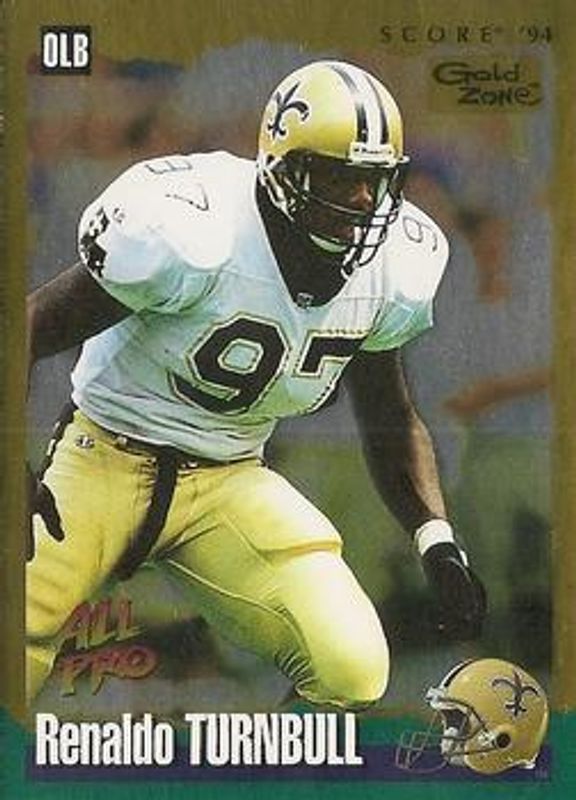 The Renaldo Turnbull 1994 Score #101 Gold Zone card is 1 of 2 Renaldo Turnbull's card variations in the 1994 Score set being tracked by Sports Card Investor, including Base.