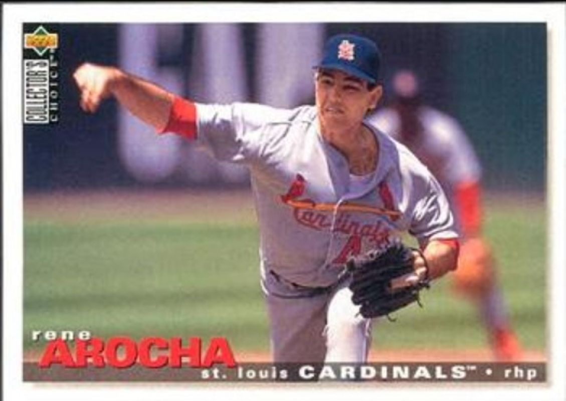 The Rene Arocha 1995 Upper Deck Collector's Choice #197 Base card is 1 of 3 Rene Arocha's card variations in the 1995 Upper Deck Collector's Choice set being tracked by Sports Card Investor, including Gold Signatures, and Silver Signatures.