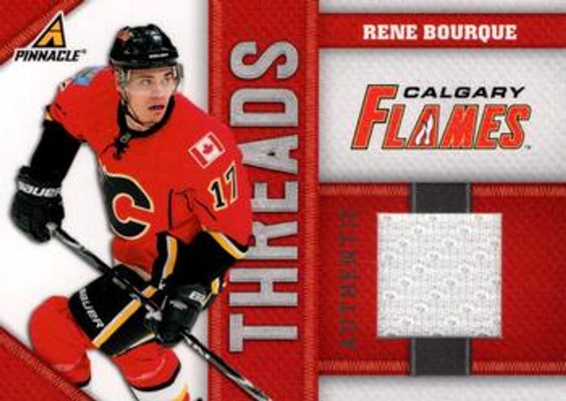 The Rene Bourque 2010 Pinnacle #RB Threads /499 card is 1 of 9 Rene Bourque's card variations in the 2010 Pinnacle set being tracked by Sports Card Investor, including Base /299, Artists Proofs, Rink Collection, City Lights Materials /499, and City Lights Signatures /35.