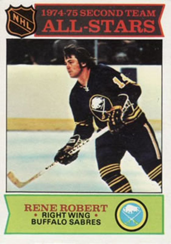 The Rene Robert 1975 Topps #296 Base card is 1 of 2 Rene Robert's card variations in the 1975 Topps set being tracked by Sports Card Investor, including Base.