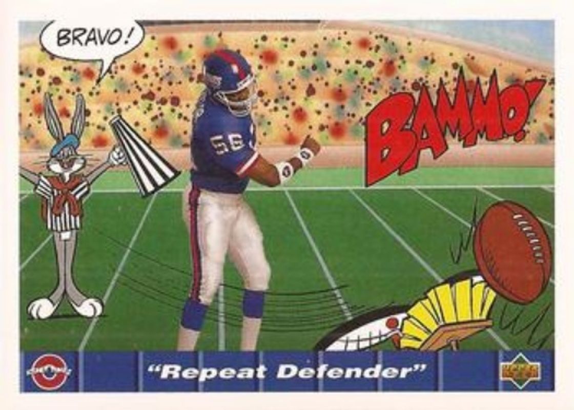 The Repeat Defender 1992 Upper Deck Comic Ball IV #131 Base card is 1 of 18 Repeat Defender's card variations in the 1992 Upper Deck Comic Ball IV set being tracked by Sports Card Investor, including #118 Base, #119 Base, #120 Base, #121 Base, and #122 Base.