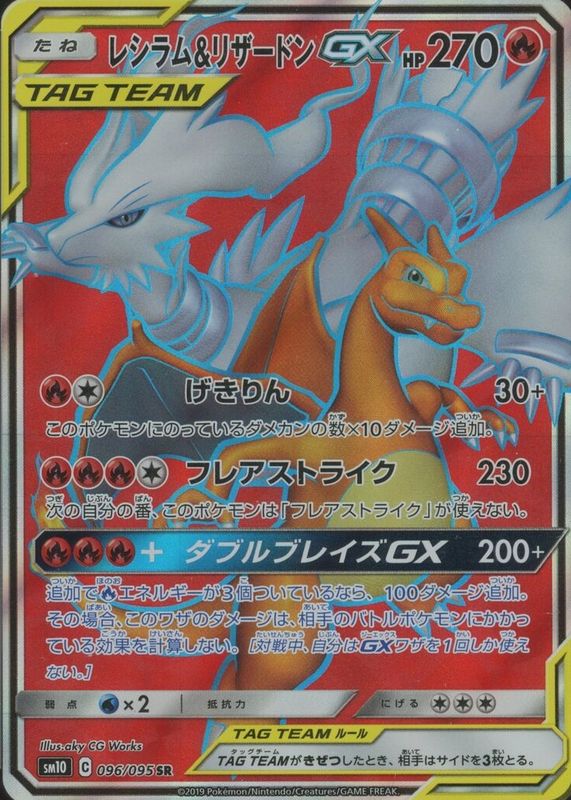 The Reshiram & Charizard GX 2019 Japanese Sun & Moon: Double Blaze #096/095 Super Rare card in Raw TCG (Near Mint) condition has not changed in price in the last 30 days and was last sold for $49.99 .