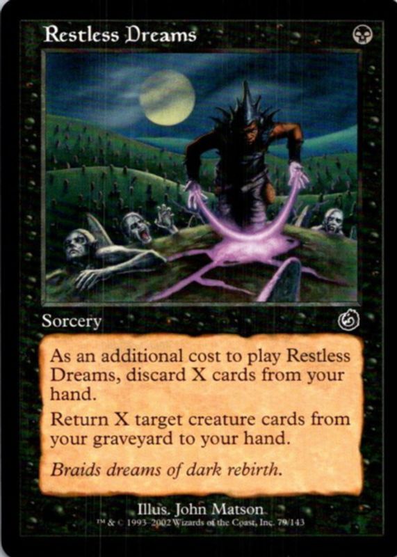 The Restless Dreams 2002 Torment #79 Base card in Raw TCG (Near Mint) condition has not changed in price in the last 30 days and was last sold for $1.93 .