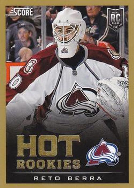 The Reto Berra 2013 Panini Rookie Anthology #706 2013 Score Update: - Gold card is 1 of 51 Reto Berra's card variations in the 2013 Panini Rookie Anthology set being tracked by Sports Card Investor, including Base /249, Purple /1, 2013 Panini Update, 2013 Panini Update:, and 2013 Panini Update: Rookie Autographs.