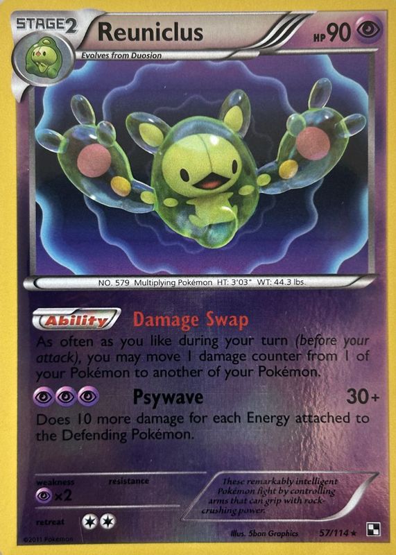 Reuniclus 57/114 Reverse Holo Rare Black & White Pokémon Card