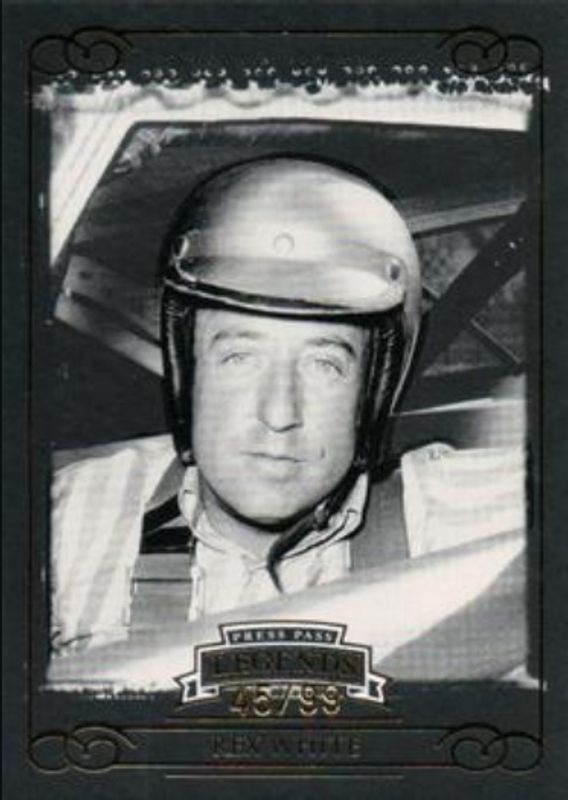 The Rex White 2008 Press Pass Legends #41 Gold /99 card is 1 of 23 Rex White's card variations in the 2008 Press Pass Legends set being tracked by Sports Card Investor, including Base, Blue /599, Bronze /299, Holo /25, and eBay Previews Red /5.