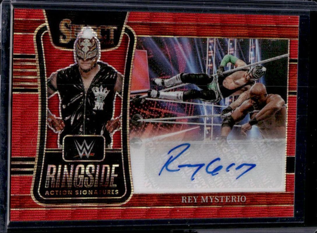 Rey Mysterio 2022 Select WWE #RA-RMY Ringside Action Signatures Red Wave RAW Price Guide