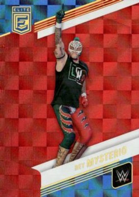 The Rey Mysterio 2023 Elite WWE #52 Red card is 1 of 54 Rey Mysterio's card variations in the 2023 Elite WWE set being tracked by Sports Card Investor, including Base, Green, Pink, Razzle Dazzle, and Status Explosion /275.