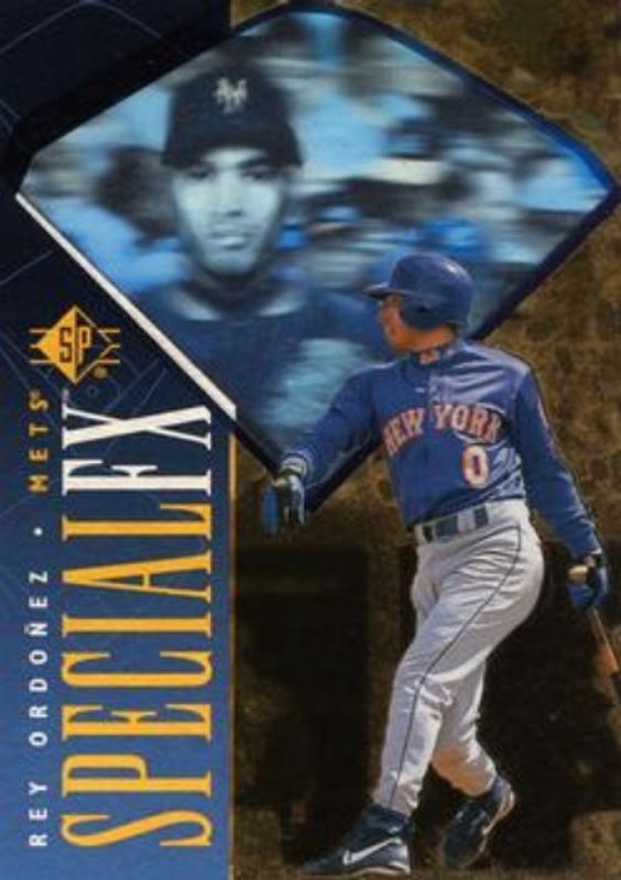 The Rey Ordonez 1996 SP #46 Special FX Rookie card is 1 of 5 Rey Ordonez's card variations in the 1996 SP set being tracked by Sports Card Investor, including Base, Marquee Matchups, Marquee Matchups die-cut, and Special FX Red die-cut.