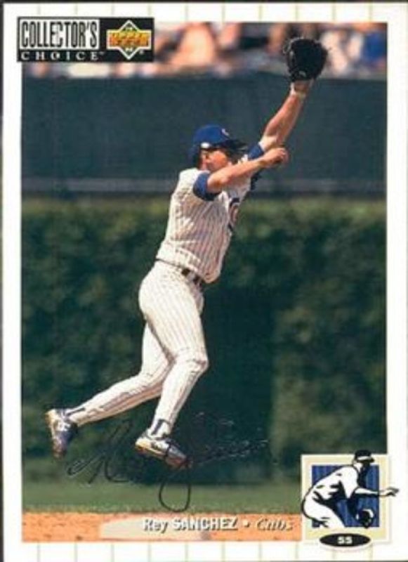 The Rey Sanchez 1994 Upper Deck Collector's Choice #558 Silver Signatures card is 1 of 3 Rey Sanchez's card variations in the 1994 Upper Deck Collector's Choice set being tracked by Sports Card Investor, including Base, and Gold Signatures.