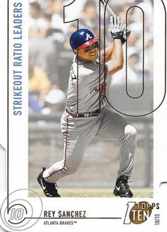 The Rey Sanchez 2002 Topps Ten #101 Die-Cut card is 1 of 2 Rey Sanchez's card variations in the 2002 Topps Ten set being tracked by Sports Card Investor, including Base.
