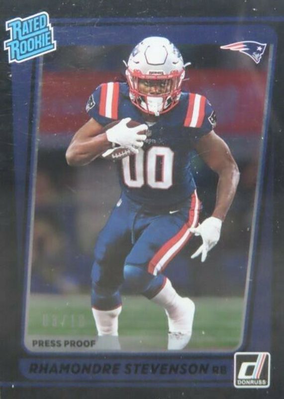 Rhamondre Stevenson 2021 Donruss #286 Press Proof Black /10 Rookie RAW Price Guide