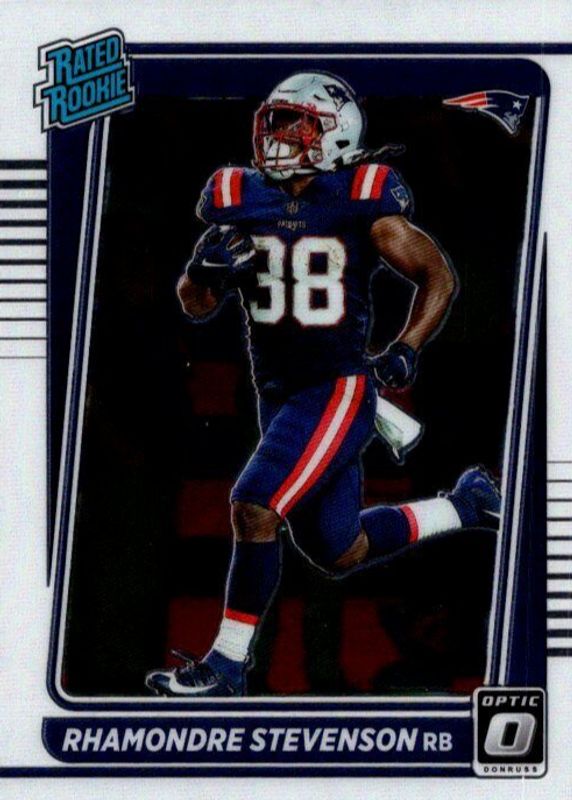 The Rhamondre Stevenson 2021 Optic #237 Base Rookie card in Raw condition has moved up $0.85 (+73.8%) in the last 30 days and was last sold for $1.99 .