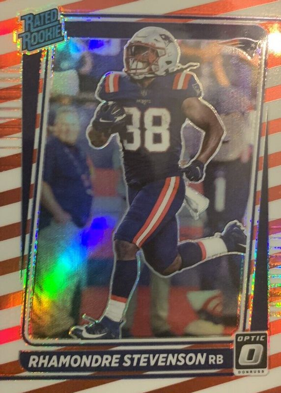 Rhamondre Stevenson RC 2021 Optic #237 Rated Rookie FREEDOM Stripes Case Hit A1