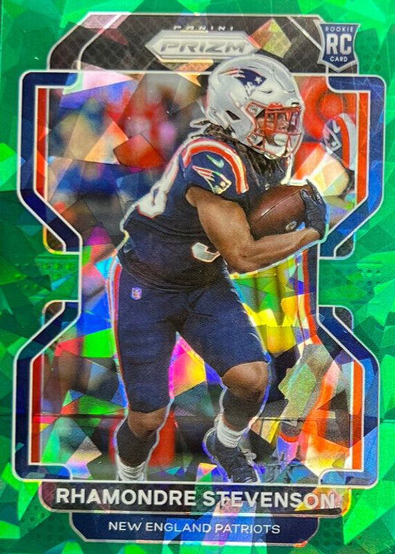 The Rhamondre Stevenson 2021 Prizm #367 Green Ice Rookie card in Raw condition has not changed in price in the last 30 days and was last sold for $6.50 .