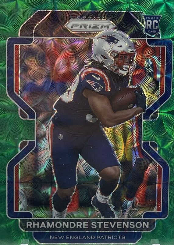 2021 PRIZM ROOKIE GREEN SCOPE PATRIOTS RHAMONDRE STEVENSON RC /75 Q0768