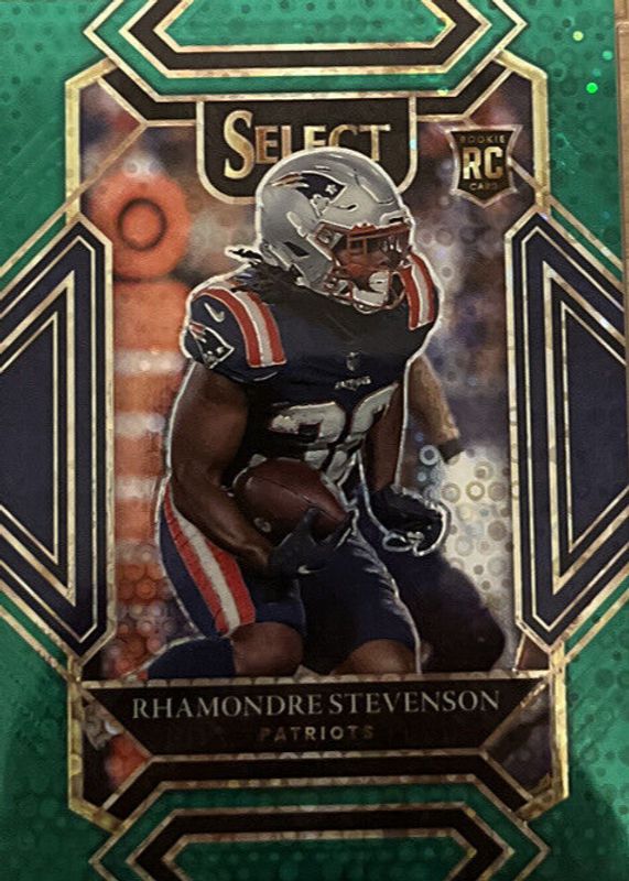 The Rhamondre Stevenson 2021 Select #275 Club Level Green Disco /5 Rookie card in Raw condition has not changed in price in the last 30 days and was last sold for $80.00 .