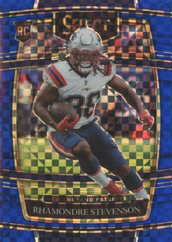 The Rhamondre Stevenson 2021 Select #75 Concourse Blue /199 Rookie card in Raw condition has not changed in price in the last 30 days and was last sold for $6.99 .
