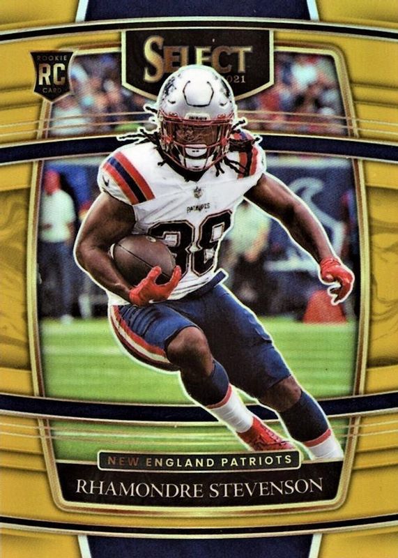 The Rhamondre Stevenson 2021 Select #75 Concourse Gold /10 Rookie card in Raw condition has not changed in price in the last 30 days and was last sold for $122.50 .