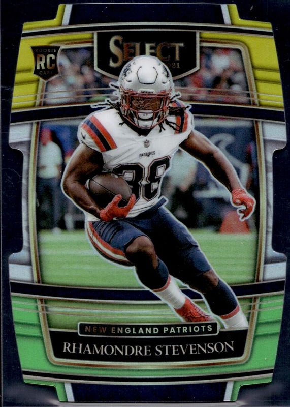 2021 Select - RHAMONDRE STEVENSON #75 - Yellow Green Die-Cut Rookie RC Patriots