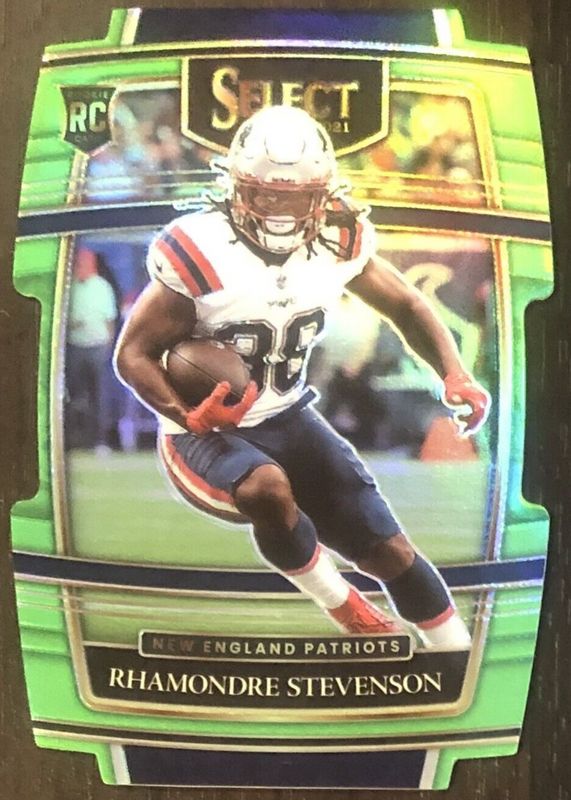 The Rhamondre Stevenson 2021 Select #75 Concourse Neon Green Die-Cut /349 Rookie card in Raw condition has not changed in price in the last 30 days and was last sold for $1.09 .