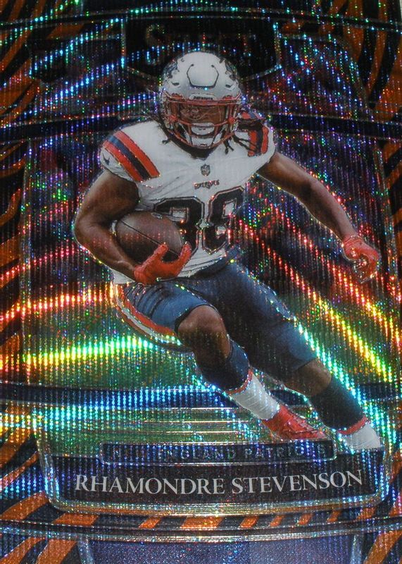 This card is 1 of 131 Rhamondre Stevenson's card variations in the 2021 Select set being tracked by Sports Card Investor, including Club Level, Concourse, Field Level, Premier Level, and Club Level Black & Gold Die-Cut.