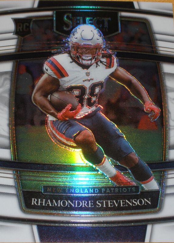 The Rhamondre Stevenson 2021 Select #75 Concourse White /35 Rookie card in Raw condition has not changed in price in the last 30 days and was last sold for $6.50 .