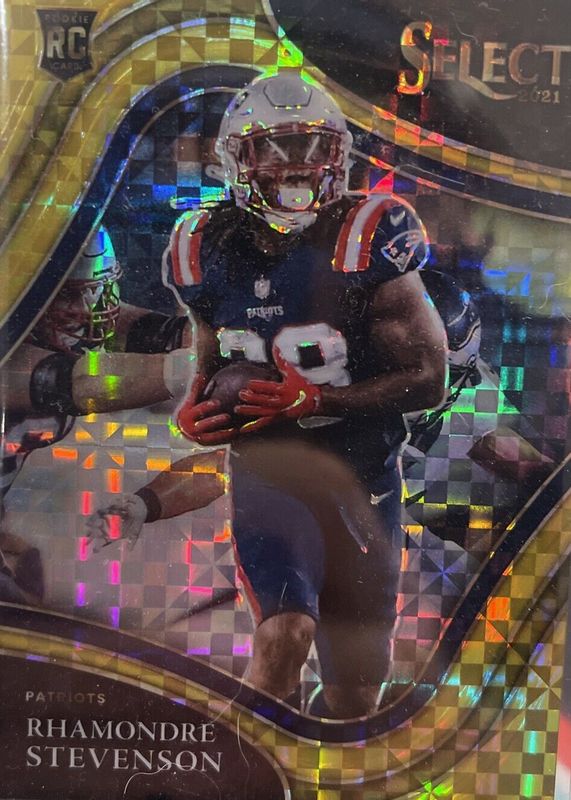 The Rhamondre Stevenson 2021 Select #375 Field Level Gold /10 Rookie card in Raw condition has not changed in price in the last 30 days and was last sold for $69.99 .
