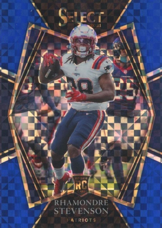 2021 Select Football #175 Rhamondre Stevenson RC # /149 Blue Checkerboard PRIZM